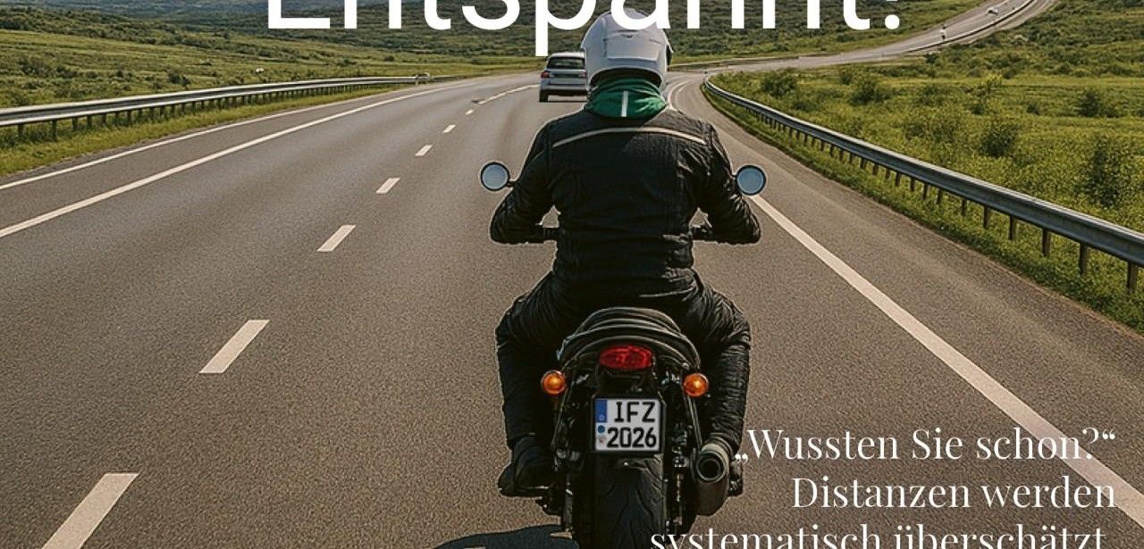 Das Wissen um einen sicheren Mindestabstand ist unter Motorradfahrern weit verbreitet, bleibt aber in der praktischen Verkehrssituation oft nur Theorie. In der Folge werden die tatsächlich zurückgelegten Bremswege überschätzt und den gedanklich festgelegten Sicherheitsraum verkürzt. Diese Diskrepanz resultiert aus verzerrter Wahrnehmung und ungenügendem Trainingsniveau. Das verkürzte Abstandsmindeste lässt kaum Spielraum für unerwartete Bremsvorgänge und erhöht die Wahrscheinlichkeit von Auffahrunfällen in komplexen Verkehrslagen, durch konsequentes Abstandhalten können Biker diese Lücke schließen.